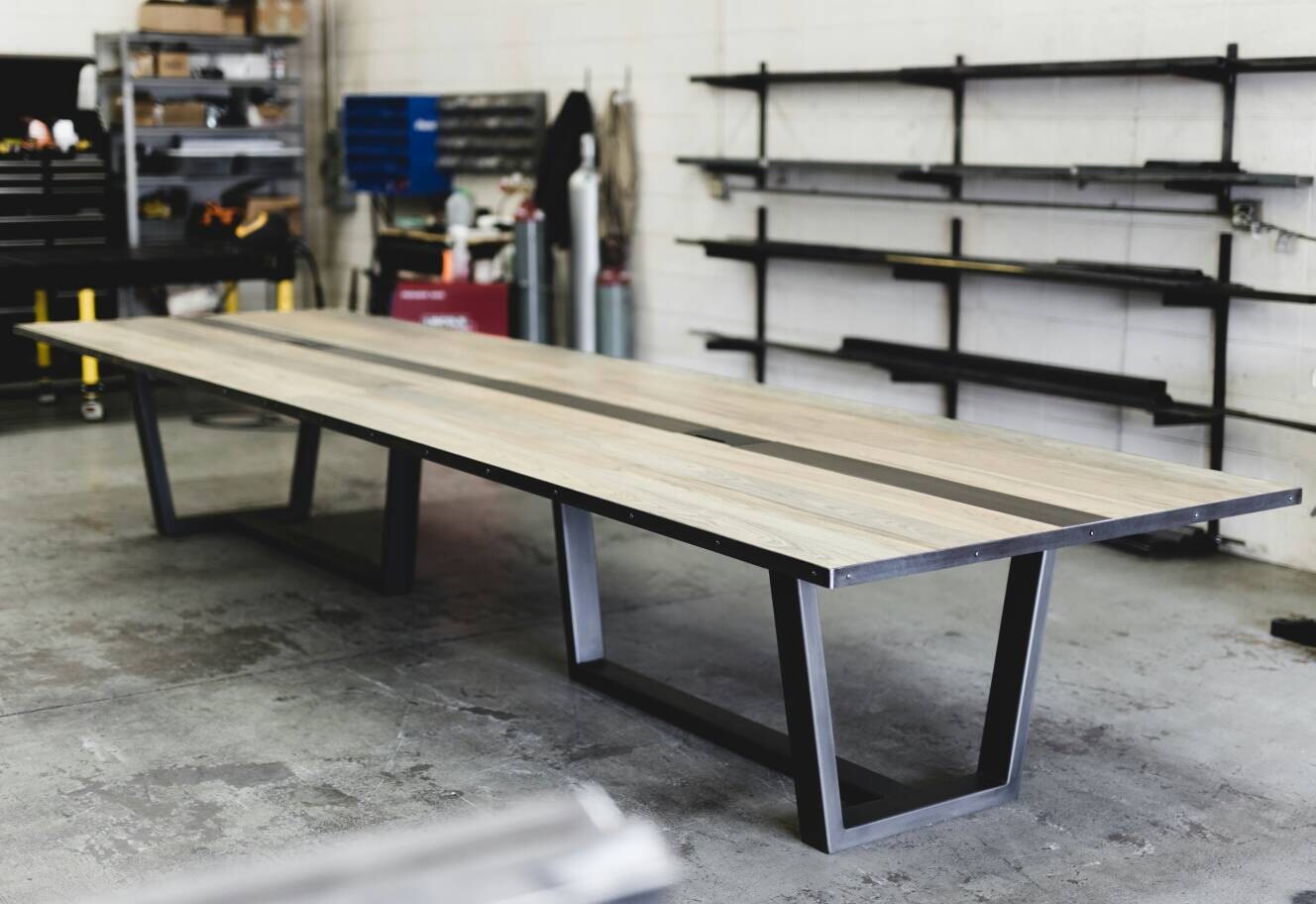 View Modern Industrial Conference Table US. Iron age office is offering a wide range of options for you to find the right tables for your conferences. Check out this table base!assembly from the ground up of this stunning conference table base.
